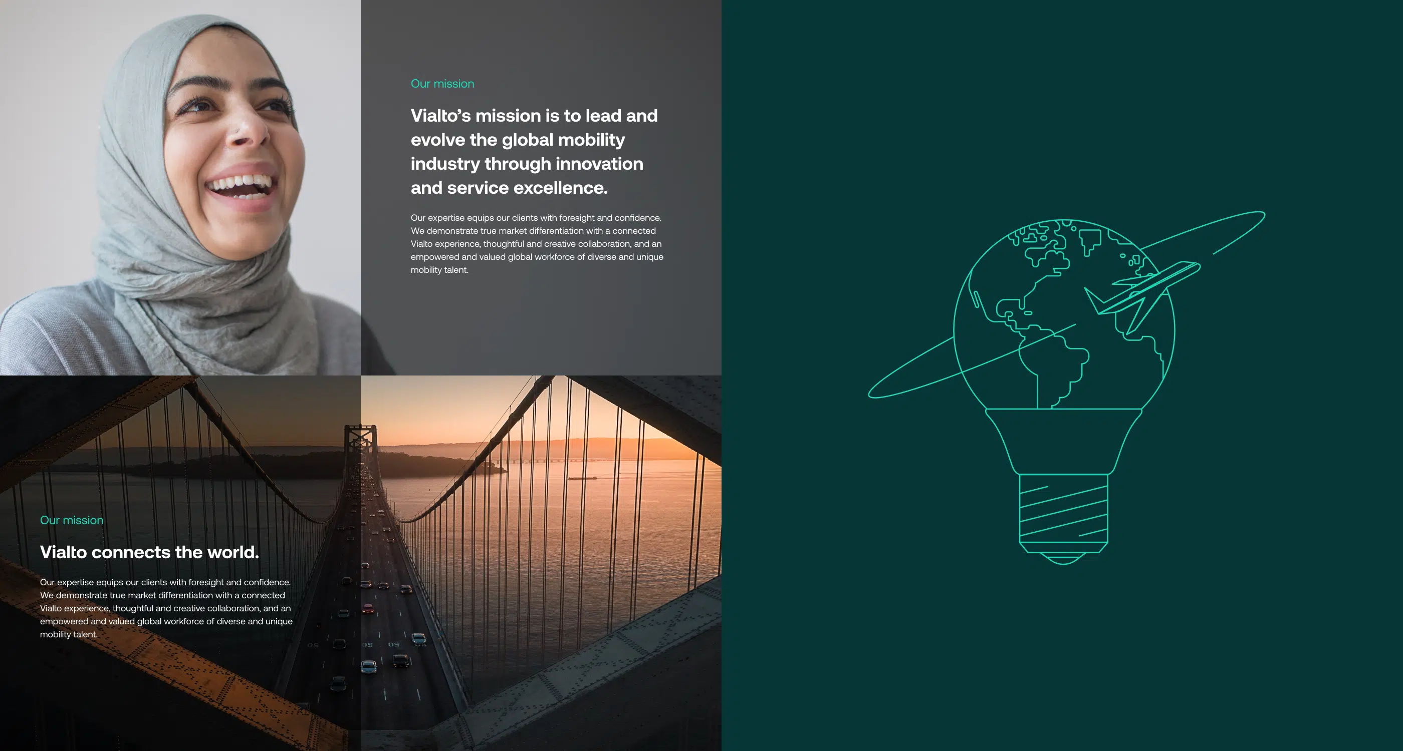 As part of the Vialto launch, we weren’t just launching a website—we were building the brand foundation for a newly independent, CD&R Capital-backed company. Following a comprehensive discovery phase, a key finding among Vialto’s employees and clients was the deep belief that global mobility has the power to be a force for good. Guided by both cultural insight and investor ambition, we helped Vialto Partners shift their frame of reference from offering Global Mobility Services to Global People Solutions—supporting the firm’s human-centric mission and expanding the brand’s relevance and commercial scope.